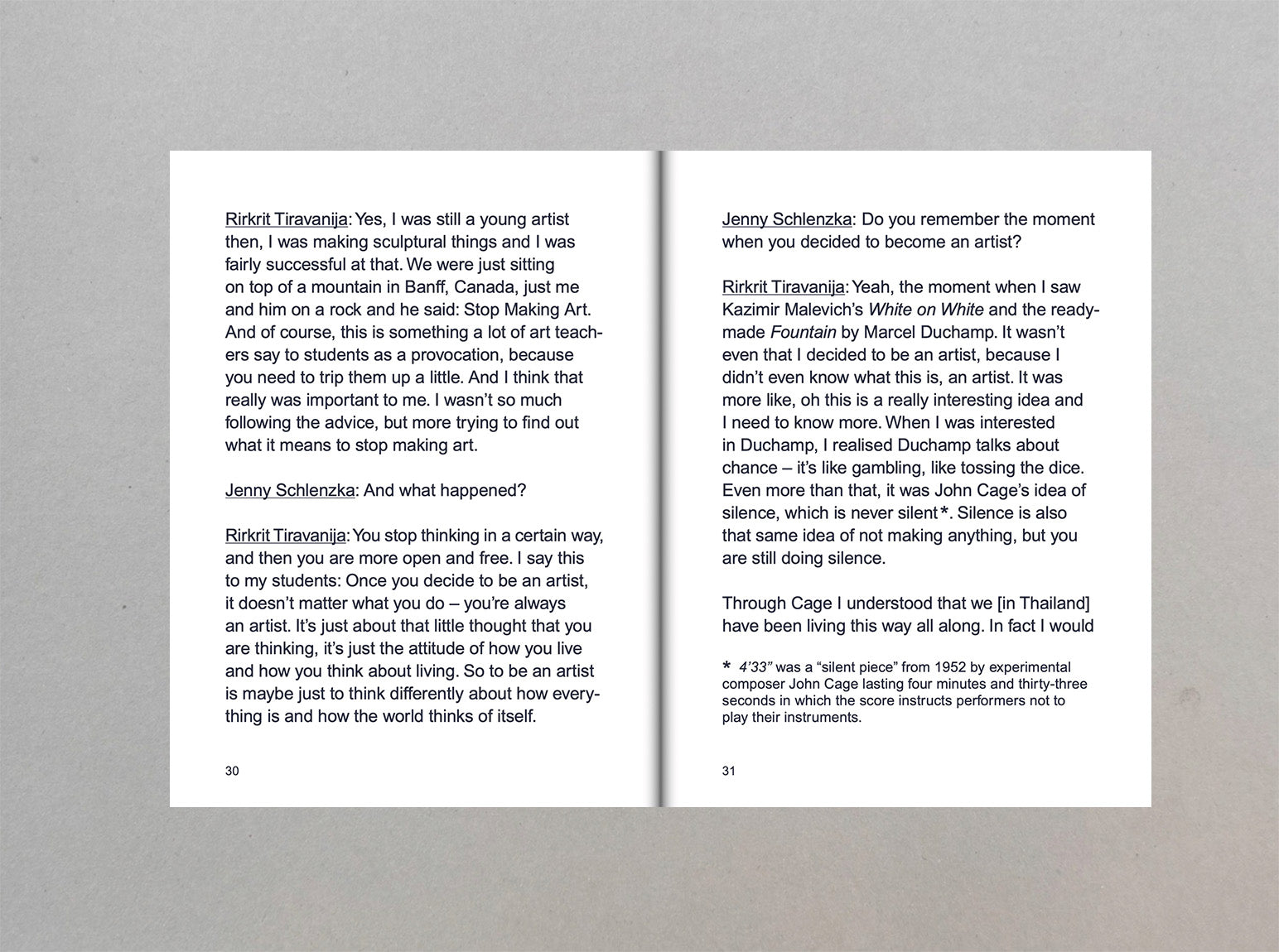 released in connection with the exhibition Rirkrit Tiravanija: Das Glück ist nicht immer lustig.