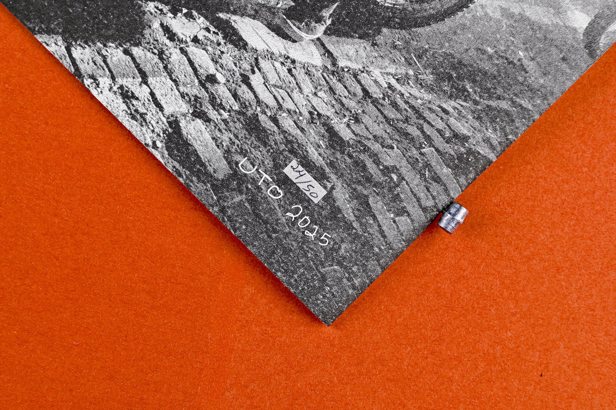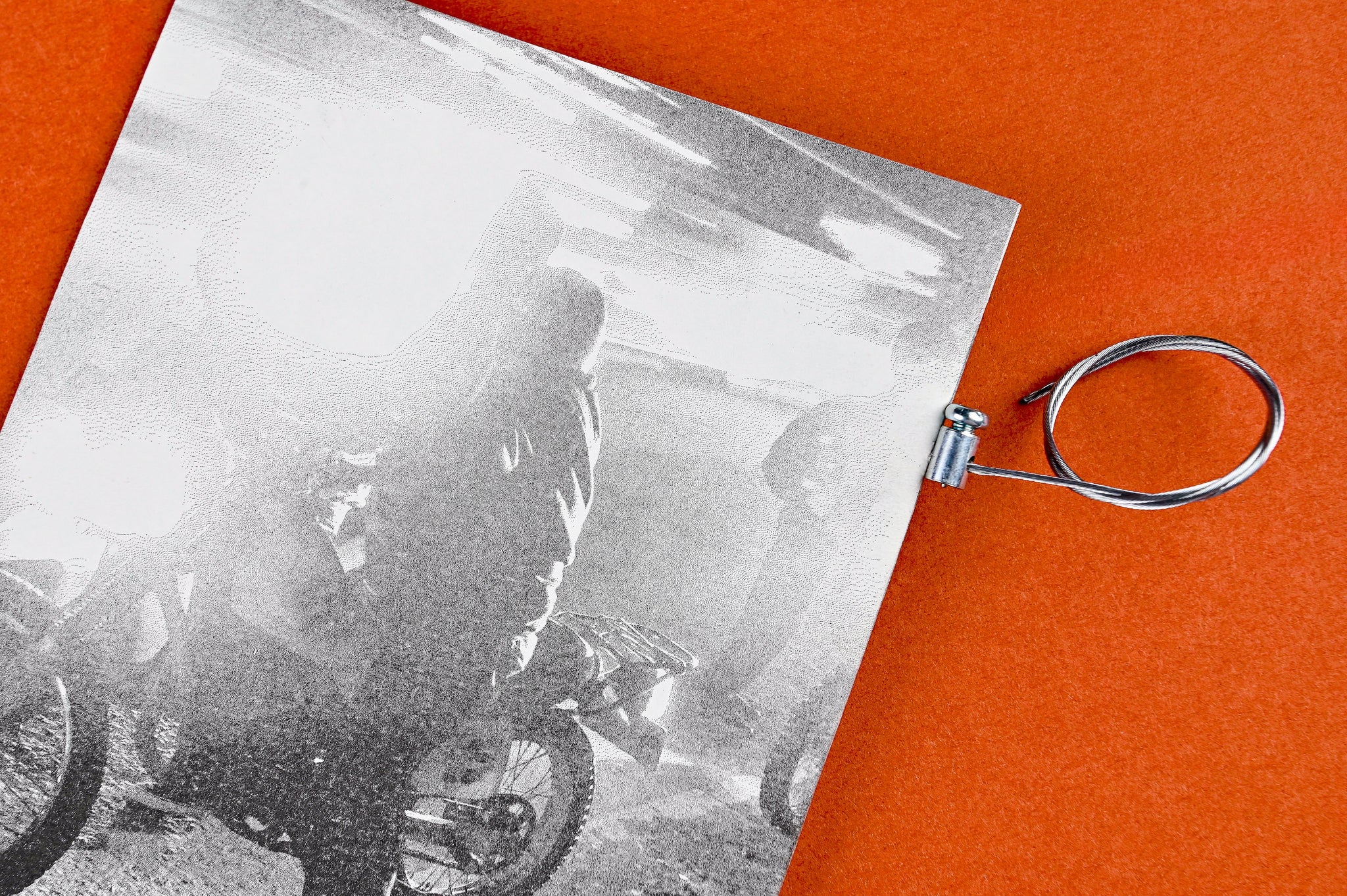 All photos were shot in black and white, printed with black risograph, and bound with a Vespa throttle cable. Gritty, loose, and real. Nothing fancy—just how that day rolled."