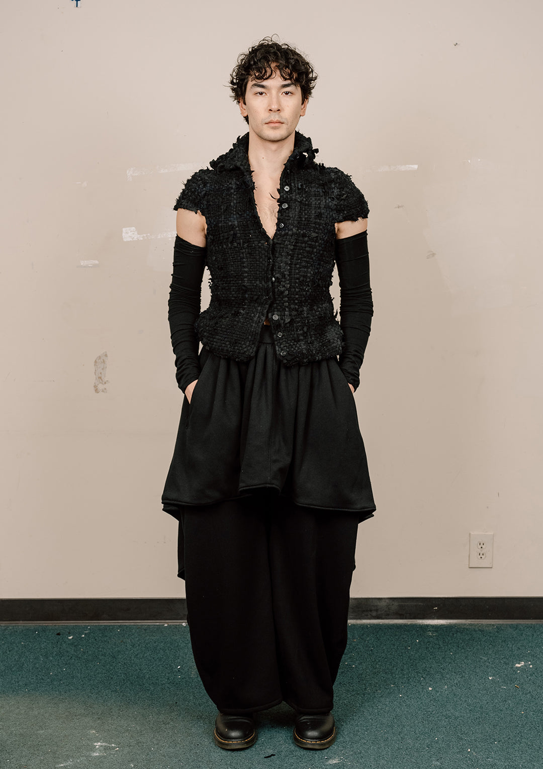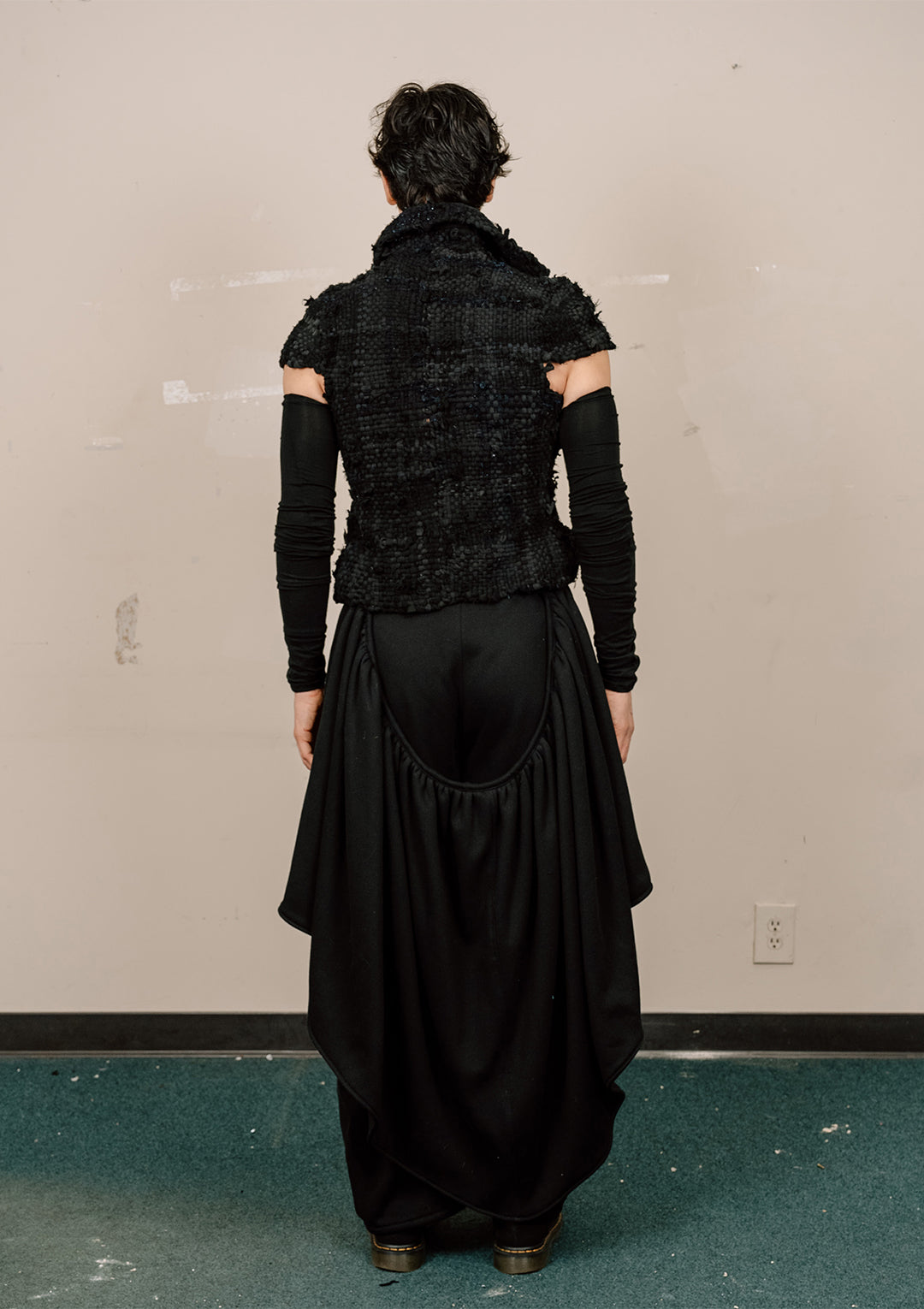 Zero waste, one of a kind, and sold as is; holes and hanging threads are intentional within the design.