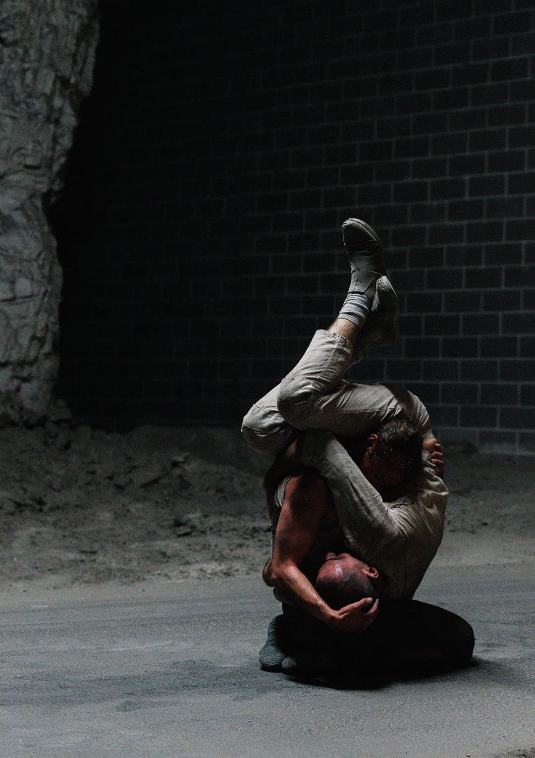 Carriage is a site-responsive performance by Matty Davis and Ben Gould that radically explores control and empathy. Informed by evolving senses of the body, from injury to trauma, healing, and growth, the work draws from the variance of Davis and Gould’s distinct physicalities to develop a shared language of movement. In this language, empathy is a physical tool, resistance offers stability, and a space is created in which everything is leveled, bringing real fear, awakening, and responsibility.