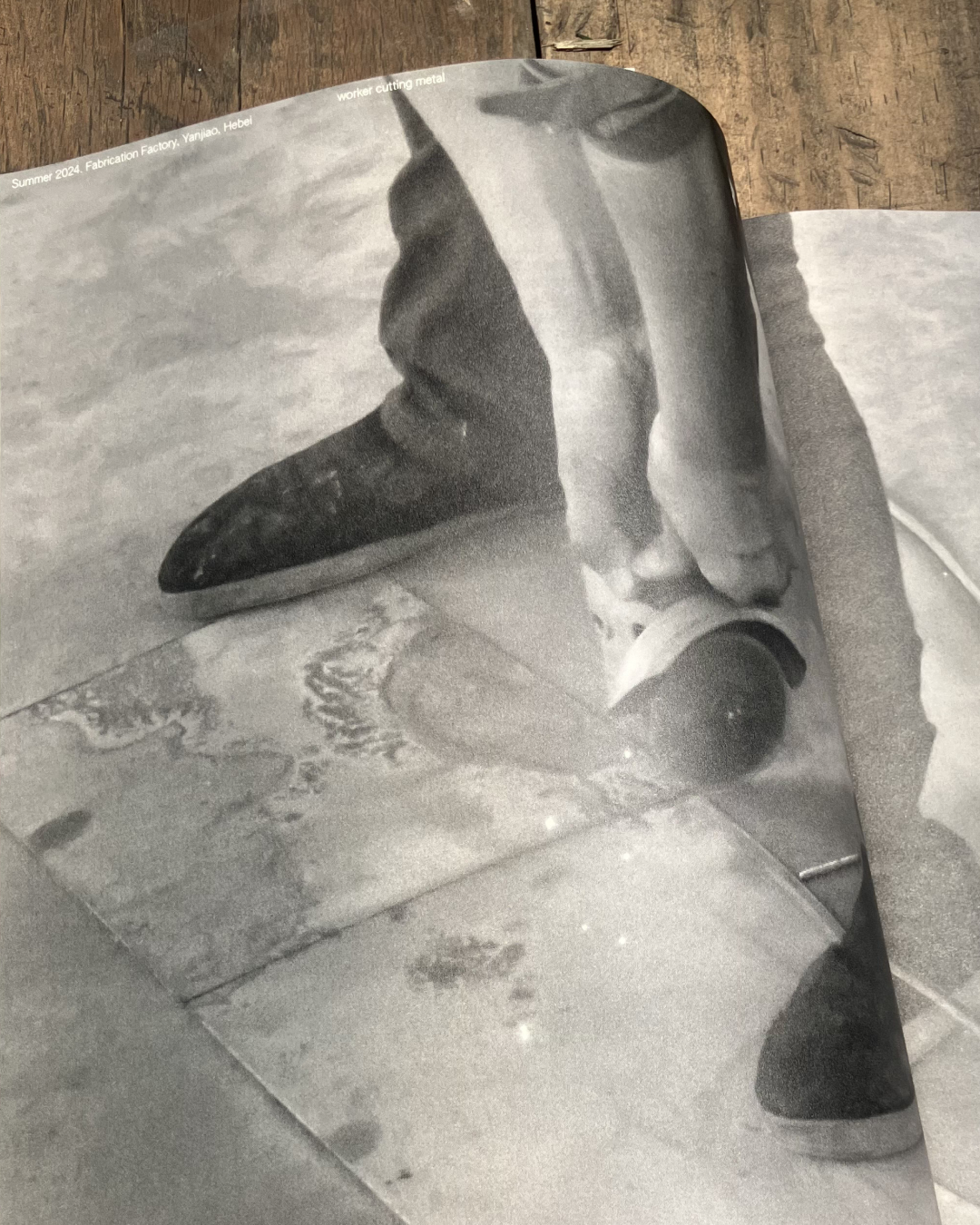 I’M ROOTED BUT I FLOW is an artist book and book-as-exhibition that explores the tension between amplified sensory pleasure and its attendant costs. It traces moments of encounter between bodies, tools, and materials, moving across factory floors and exhibition spaces, between migrant workers and artists, between sensory intimacy and structural distance in China and the United States.