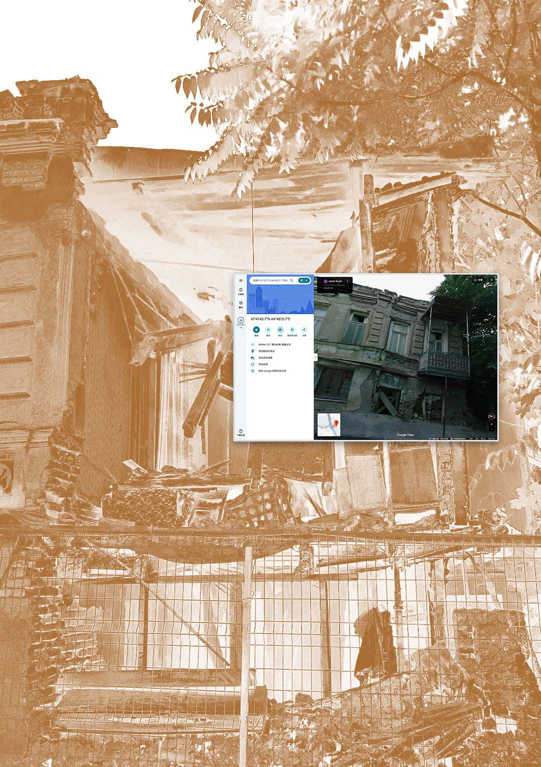 A deserted house on Chakhrukhadze Street in Tbilisi. According to Google Maps imagery, its structure and façade were still intact as of June 2023.