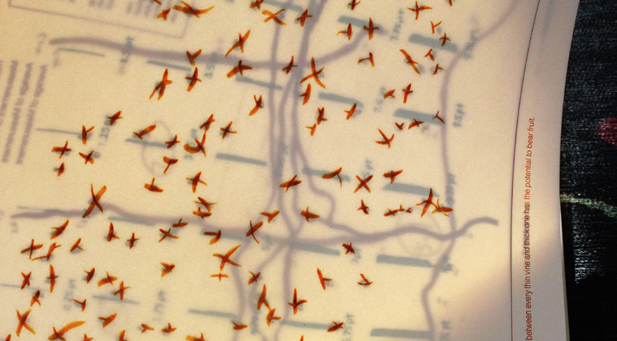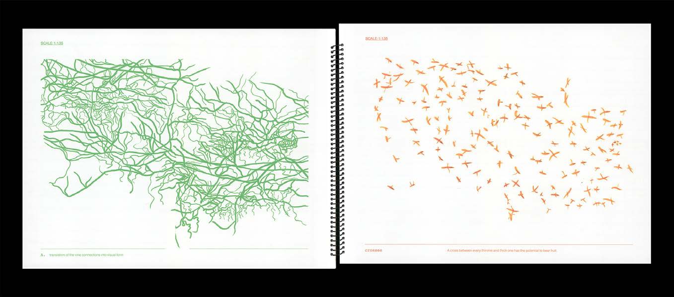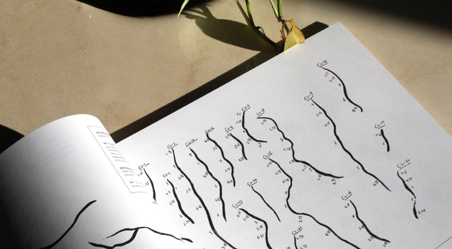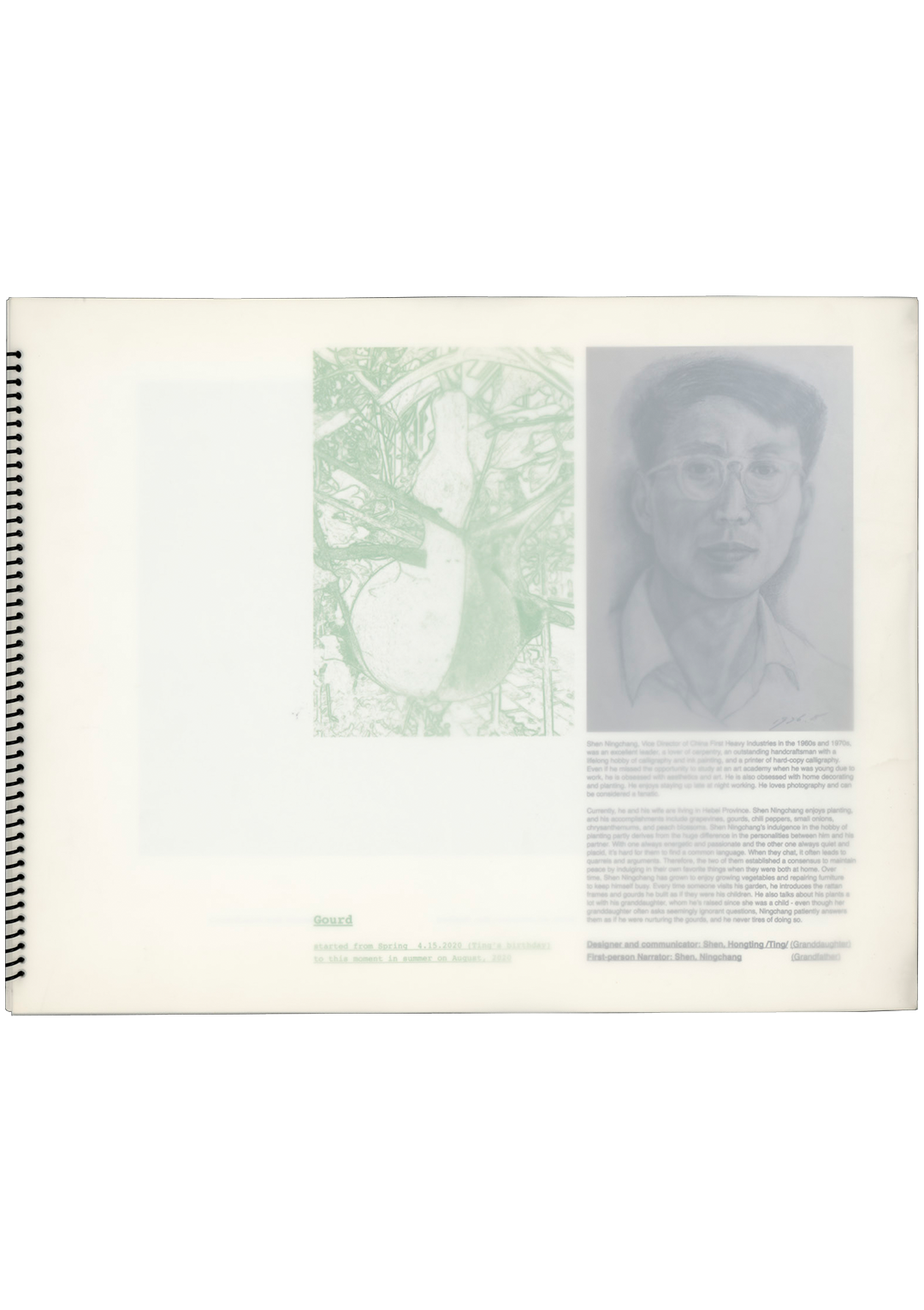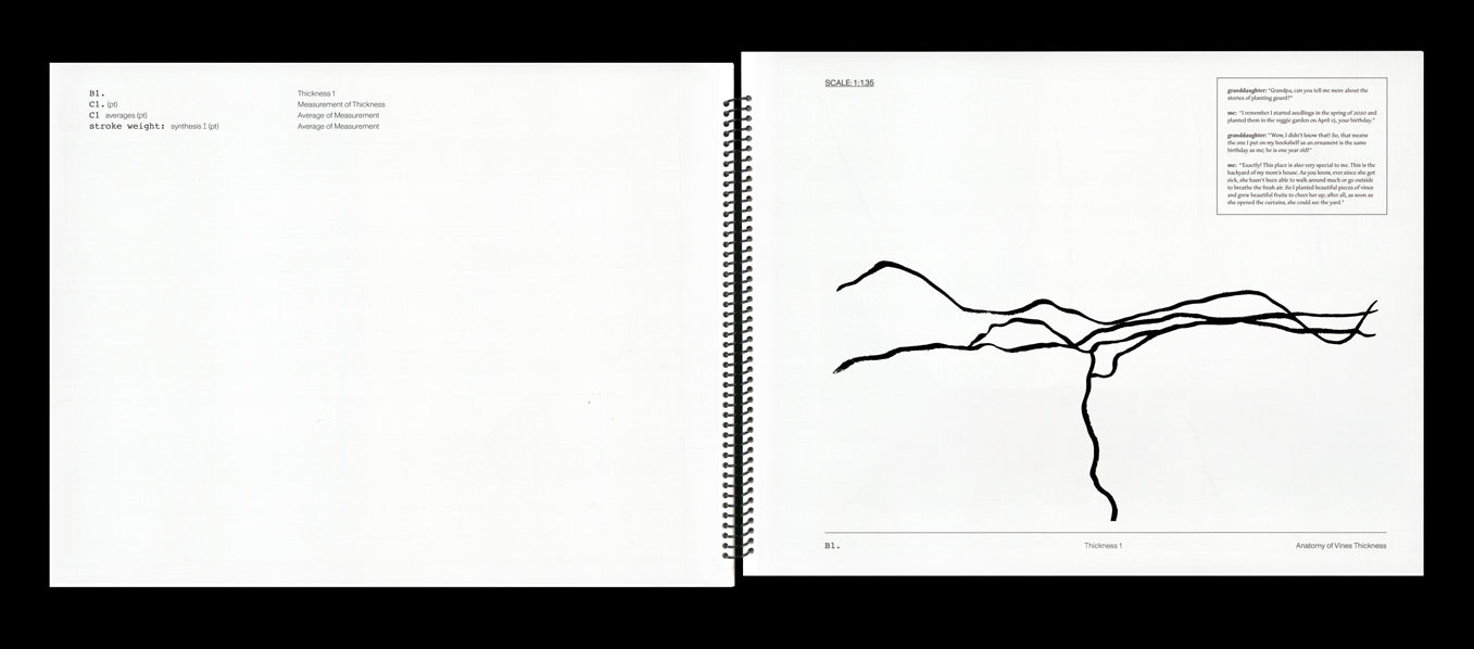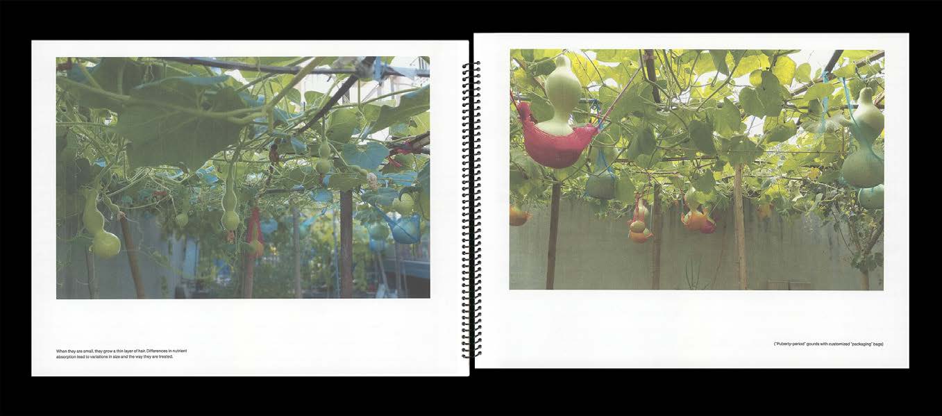 Inspired by my grandfather’s seasonal gourd cultivation, this book treats the gourd vine as both a natural system and a visual language. Using photographs of his plants, I translate vine paths into a symbol system informed by calligraphy and type design, concluding with an interspecies dialogue on growth, time, and care.