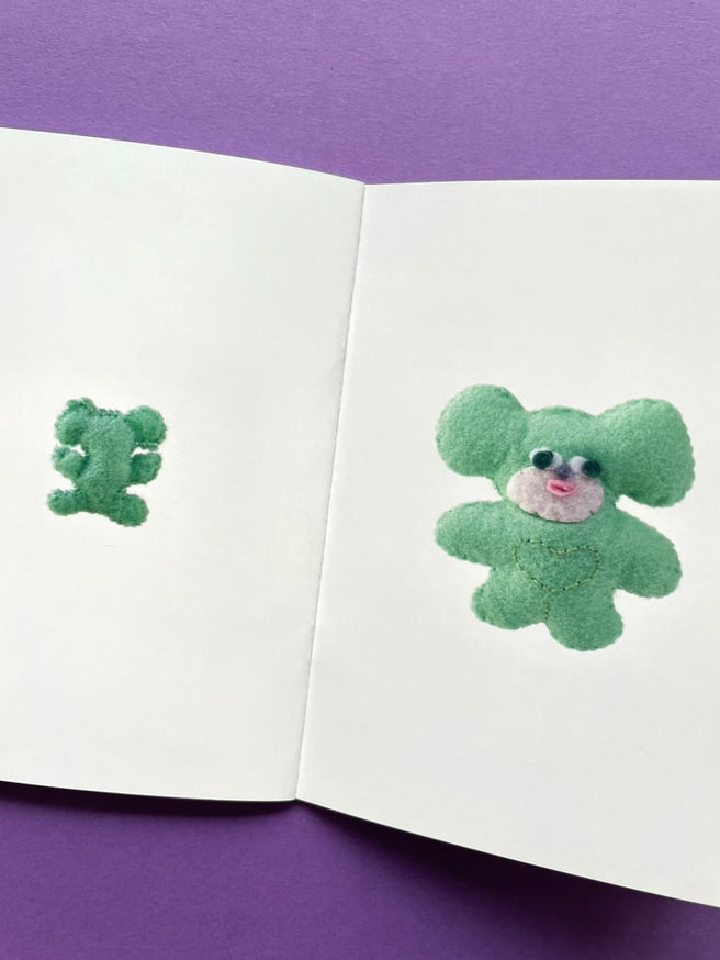 Korean artist Bird Pit is known for his pencil and colored pencil drawings. In DOLLS, he translates his drawing style into non-woven dolls that, despite their three-dimensionality, retain the character of flat drawings. DOLLS conveys both the tension between flatness and volume and the distinctive character of the figures with full intensity.