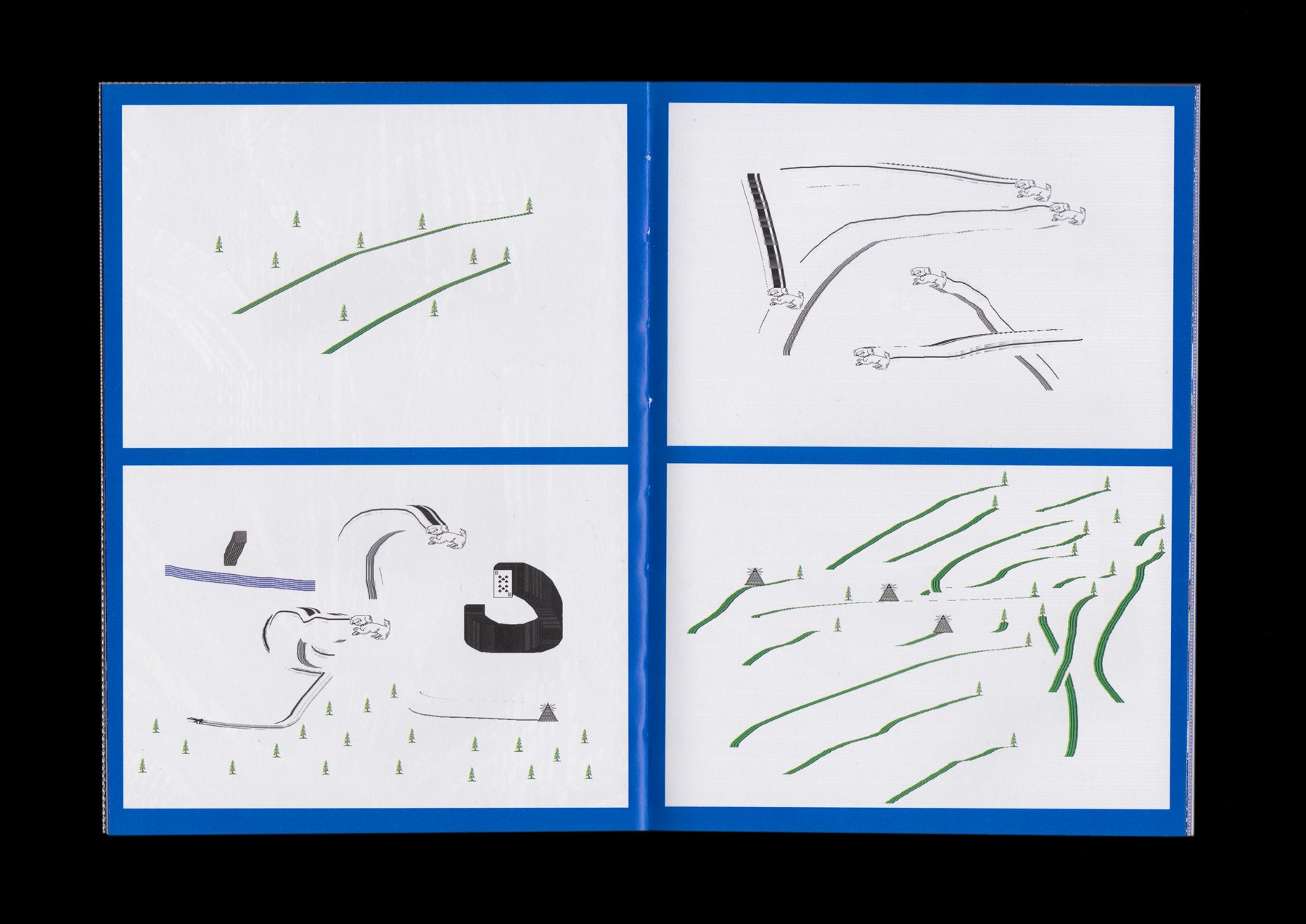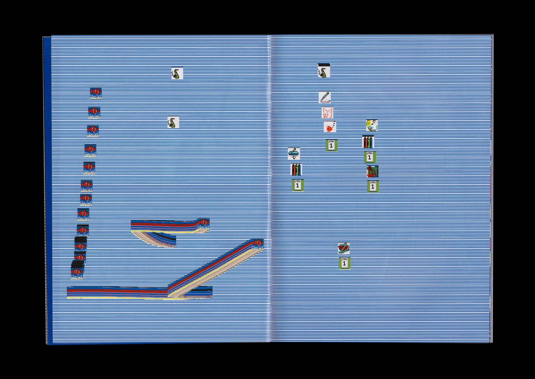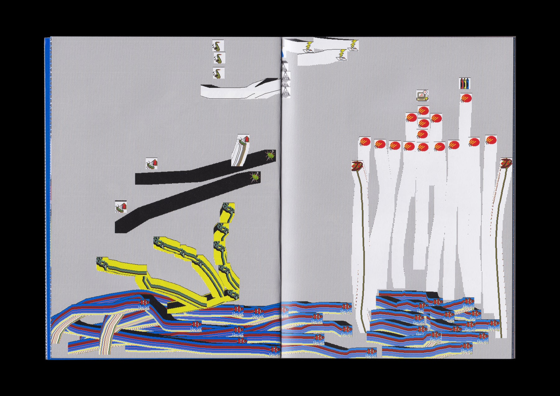 Follow the Butterflies gathers computer paintings made between 2017 and 2025 with PathPaint, a browser-based computer painting program and ongoing software artwork by artist Andrew Rosinski. PathPaint explores ”software as an aqueous conduit,” where digital brushstrokes flow from a conflux of found media, authored media, and programmatic processes. The application functions as both instrument and collaborator, shaping the image alongside the human hand. Designed by RELATED DEPARTMENT and published by Page Bureau, this artist’s book shows how human intention and machine logic co-produce form over time, and delineates how a minimal and experimental user interface can invite risk, responsiveness, quirks, iteration, and spontaneity.