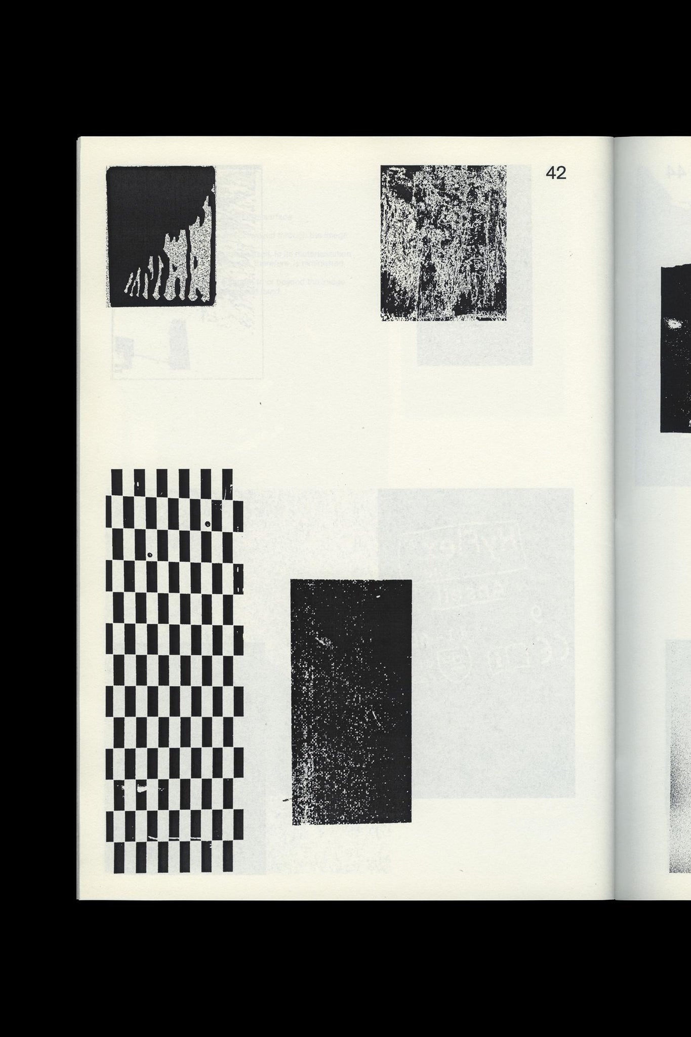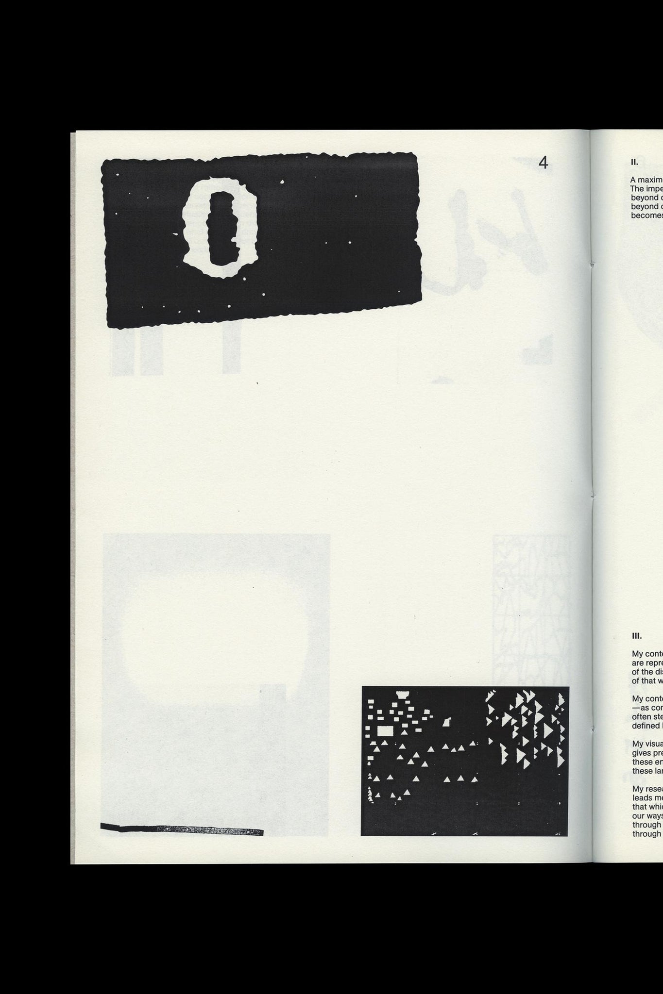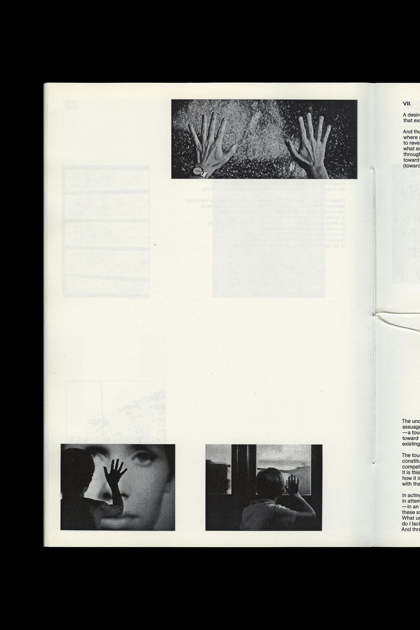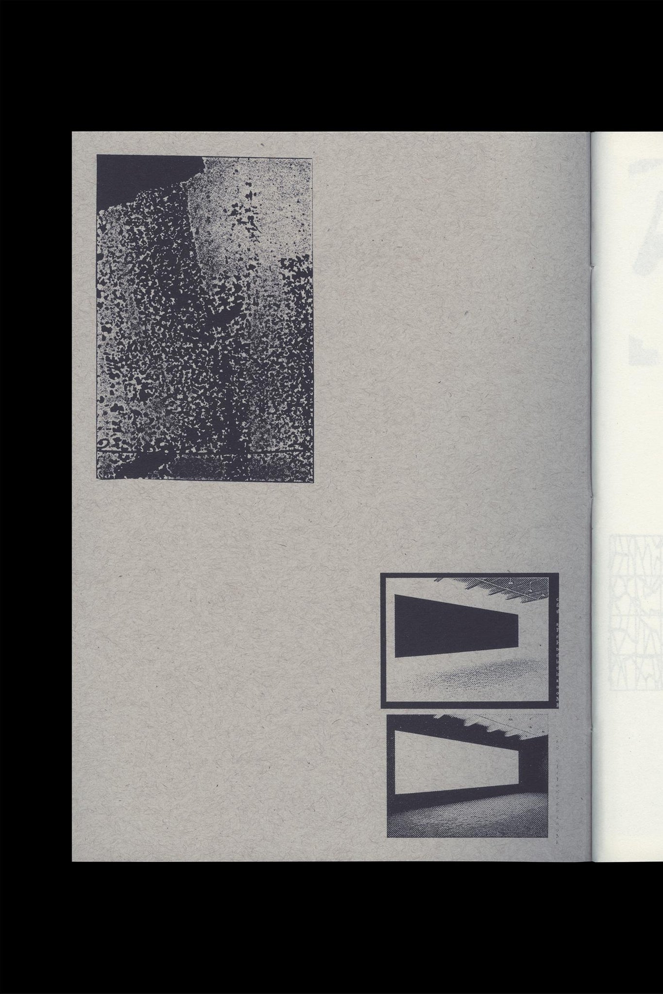 Thread-stitched, softcover artist book by Ryan Gerald Nelson / Pages: 48 / Size: 200 x 280 mm (7.87 x 11 in.) / Print run: First edition printing of 75 / Printing: 3-color silkscreen, printed by hand (covers); 1-color black, sheet-fed printed on an HP LaserJet 5000n (pages) / Papers: French Paper Chipboard Kraft, 100lb cover (covers); Munken Print White 15, 80gsm (pages) / Binding: 3-hole pamphlet stitch with white thread
