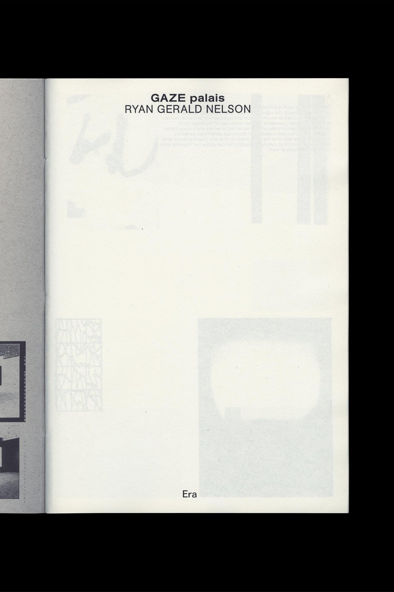 Gaze Palais merges “Displaced Gaze” (a text first published by Ryan Gerald Nelson in 2015) and Nelson’s ongoing project titled Peripheries (2014–present).