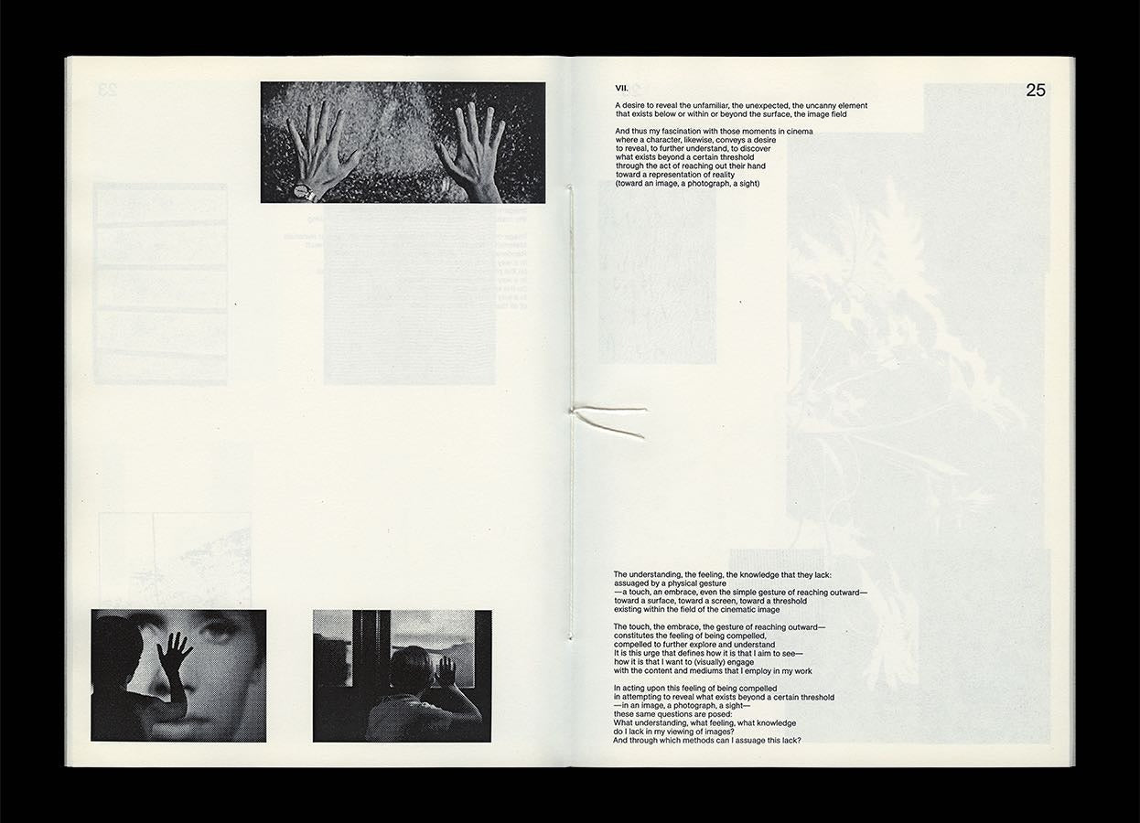 Part treatise in its adolescence, part foundational slab, part visual lexicon casually unfurled like a roll of film that you just in this exact moment remember is undeveloped and frantically rewind back into the camera, but not before errant light and image imprint their undeniable presence. Gaze Palais presents the artist’s theory of The Image woven through arrangements of the image-relics underpinning this scopic palais.