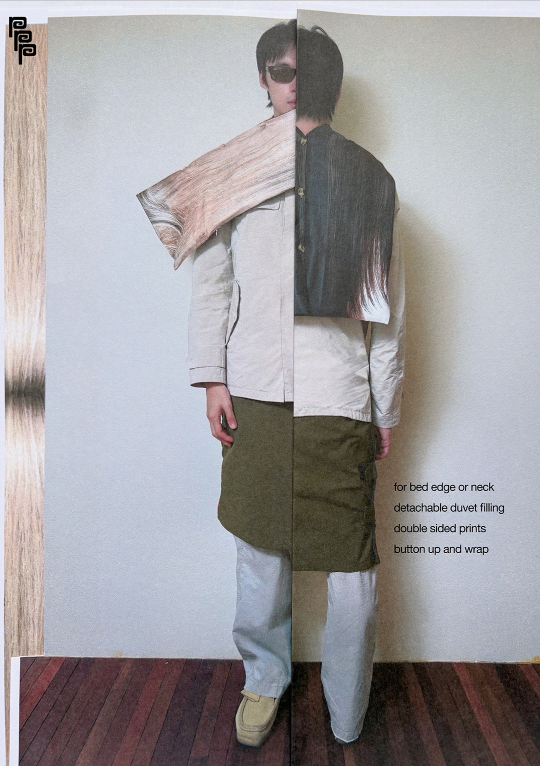 In collaboration with a household textile company, PPP Project 2 proposes a set of wearable beddings that we call ''beddingwear''.