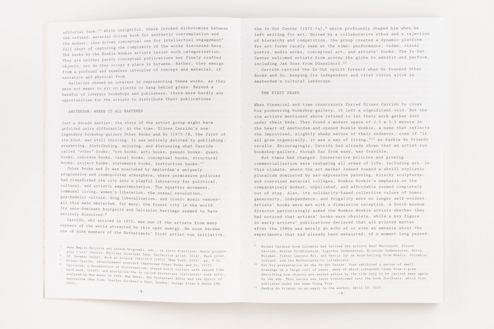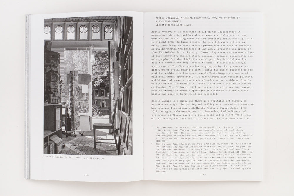 This book explores nearly four decades of Boekie Woekie, Amsterdam’s legendary artist-run bookshop and gallery. Founded in 1986 by a group of artists, Boekie Woekie has since evolved into a self-sustained hub for artists’ books and a living artwork in its own right. With contributions by Maike Aden, Christa-Maria Lerm Hayes, and Anne Thurmann-Jajes, the book reflects on Boekie Woekie’s roots in the Fluxus tradition, its radical publishing ethos, and its ongoing challenge to art world conventions. It includes archival material, excerpts from Jan Voss’s diary, an exhibition checklist, and documentation of the group’s subversive printing practices and international collaborations.